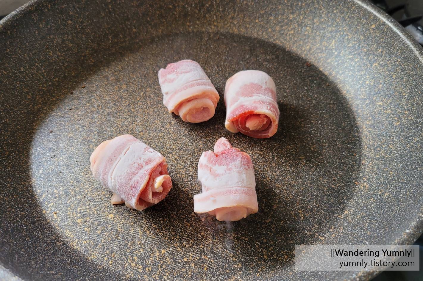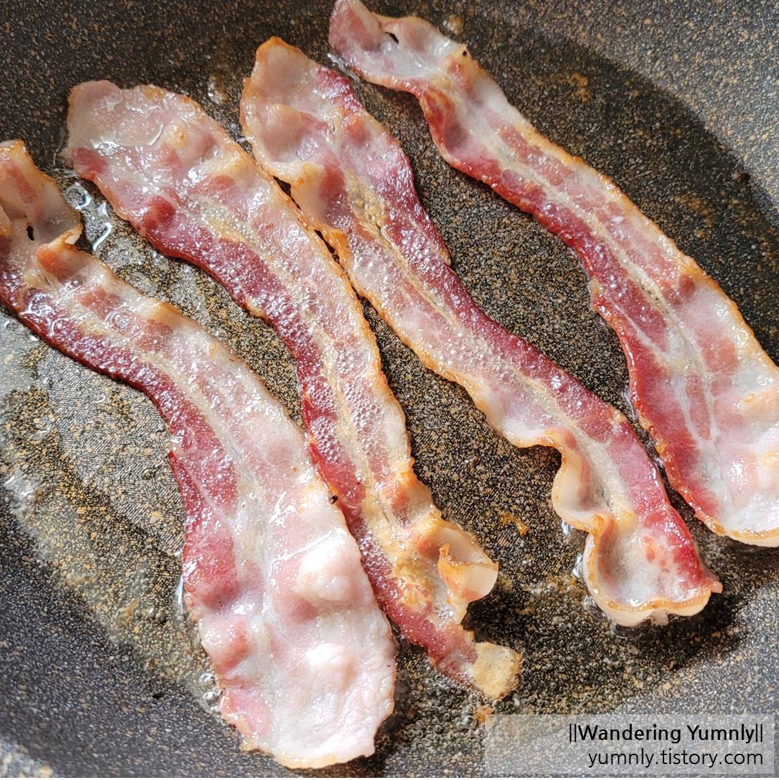 그렇지만 베이컨이잖아요. 바싹 익혀서 먹을거라서 전체적으로 다 익혀서 먹을 수 있습니다.